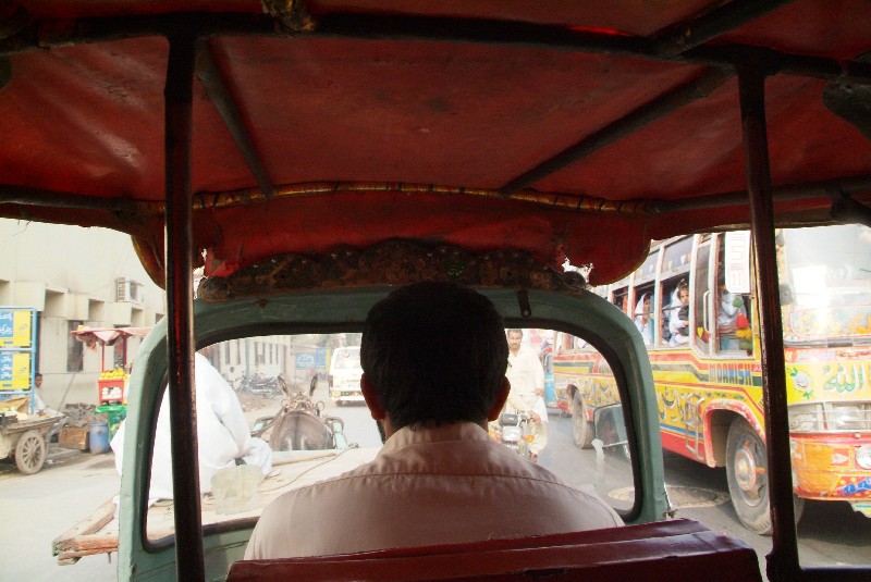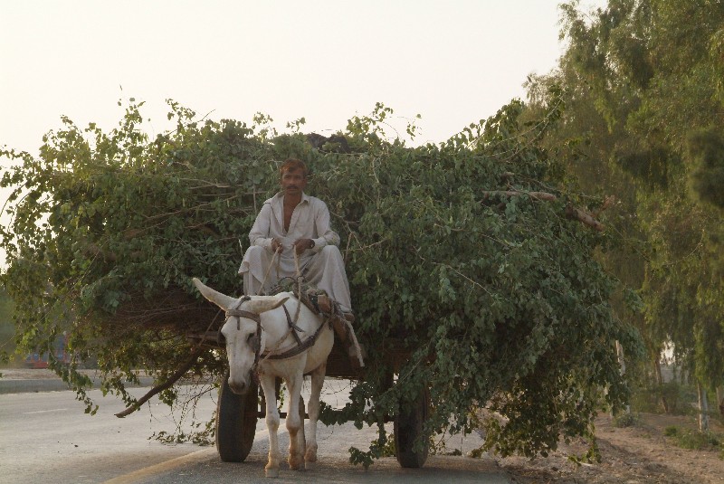 Doch endlich ist es dann soweit: Wir sitzen wieder auf dem Rad und fahren aus Multan raus. Unangenehm ist zwar der Lärm und Dreck der zahllosen anderen "Verkehrsteilnehmer" in Form von Fahrrädern, stinkenden Rikschahs, knatternden Mopeds, Ochsen-, Pferde- oder Eselkarren, in dauerhupenden Bussen, Autos und LKW. Jedoch lässt es sich - abgesehen vom Lärm und Dreck - durch den insgesamt langsameren Verkehrsfluss für uns angenehmer fahren als beispielsweise im Iran, wo es in den Städten quasi nur rasende Autos gibt. Und je mehr wir uns von der Stadt entfernen, desto besser radelt es sich. Hier sind angenehmerweise auch unzählige Straßenstände an denen wir Rast machen können. Und nicht nur neben der Straße ist einiges los, auch die Straße selbst scheint zu leben. Einheimische Radfahrer bummeln meist im Schneckentempo vor sich hin, bis Sie diese merkwürdigen Ausländer auf diesem sonderbaren Gefährt an sich vorbeifahren sehen, uns Sie dann natürlich Gas geben, um zu dieser merkwürdigen Erscheinung auf 2 Rädern aufzuschliessen. Dieses unerklärliche Phänomen wollen sie sich dann verständlicherweise so lange wie möglich anzuschauen.